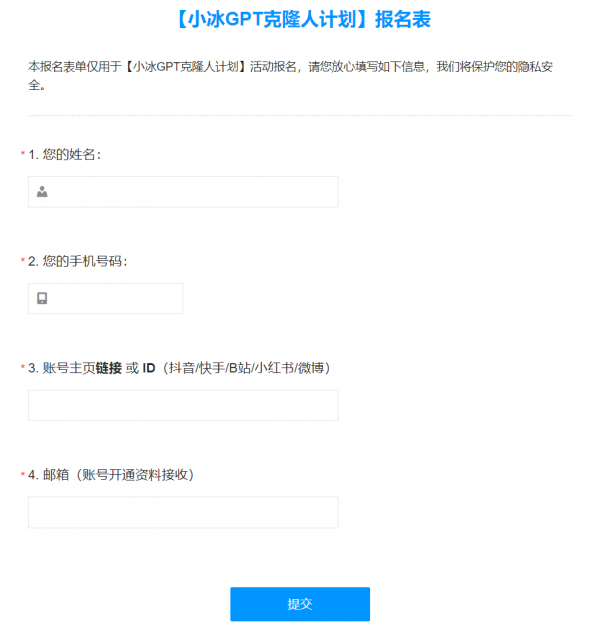 从小冰公众号获悉,克隆人基于小冰框架大模型、神经网络渲染及超级自然语音技术,可进行实时情感交互、提供 AIGC 能力。计划现已在中国日本启动报名,首批克隆人在一个月内正式上线。出于个人隐私数据安全及伦理考虑,首批限制 300 个名额,需要本人提供权属证明。 小冰公司表示,将随计划推进,逐步放开人群及名额限制。目前计划在年底前,将 GPT 克隆人规模扩大至 10 万人。此次克隆人产品,是小冰新语言模型首次在国内产品中亮相。 首批克隆人将使用小冰框架混合大模型方案,以实现安全可控、情感知识、质量成本之间的最优平衡,可运行于最廉价的 T4 GPU。在神经网络渲染部分,小冰技术不需要 GPU,而是在 CPU 上运行。 感兴趣的用户可以点此进入“小冰 GPT 克隆人计划”报名表。用户需要填写姓名、手机号、抖音 / 快手/B站/小红书 / 微博账号、邮箱等信息。