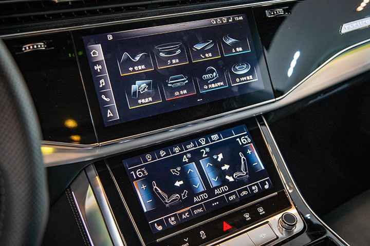 来到车厢内部,其实设计机关算不上十分新颖奇特,究竟这在A8其它车型上均已呈现过,但时尚与科技感却十分浓重,加上三块硕大的液晶屏幕及气氛灯设计,营造出极为科幻惬意的驾乘情况。就连常常豪车接送的客户坐上我的车,也不禁伸出大拇指点赞。