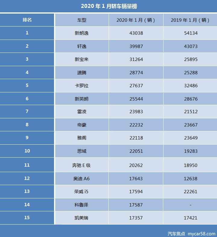 轿车方面,公共朗逸以4.3万辆的后果取得了2020年第一个销量冠军,作为1月份独一一款销量打破4万辆大关的车型,朗逸神车的称谓实至名归。日产轩逸自上市后就一直猖獗推广,较好的市场口碑也为其创下了不错的市场表示,靠近4万的销量与朗逸差距并不大,时刻都有再次夺得冠军的势头。