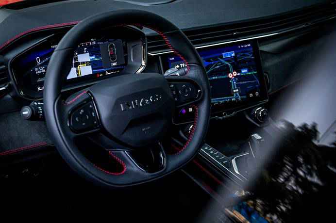 别的,领克05的D型举动偏向盘还首次回收带高敏手势触控板。更轻量化的贯串式埋没出风口设计,有效地低落了视觉压力,也更好地拉伸了车内的横向视觉宽度。12.7英寸的中控屏两侧则回收了为其量身定制的入口真铝饰板,搭配全球顶尖的镭射斑纹工艺,以及赛车式桶形座椅,进一步突出了车内的豪华举动气氛。