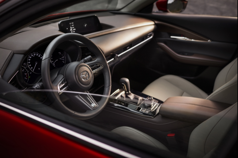 CX-30不只在外观方面提供了自动开闭内进气格栅、光羽智能LED前大灯组、夜影环形LED尾灯组、最大18寸的铝合金轮毂等同级稀有设置;新车车内也有8扬声器环抱声、随动喷水无骨雨刷、旋钮式人机交互等越级标配。