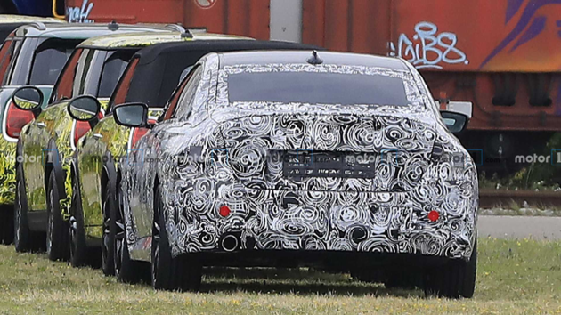 从谍照来看,新车前方进气口依旧为比例较为协调的传统双肾样式,但没有利用雷同宝马4系的浮夸的“大鼻孔”格栅造型。车灯位置靠向前脸的两头,而且车灯带有弧线造型,这与此前曝光的谍照保持一致。前困绕下边留有很是宽的进气口,以突出新车举念头能。